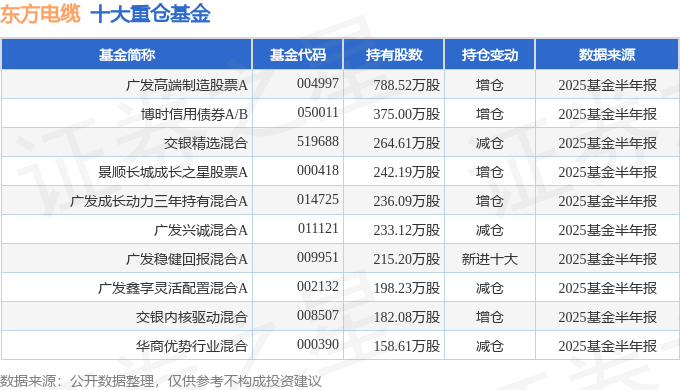 持有东方电缆最多的基金为广发高端制造股票A,目前规模为44.64亿元,最新净值1.2407(8月14日),较上一交易日下跌1.38%,近一年下跌0.26%。该基金现任基金经理为郑澄然。