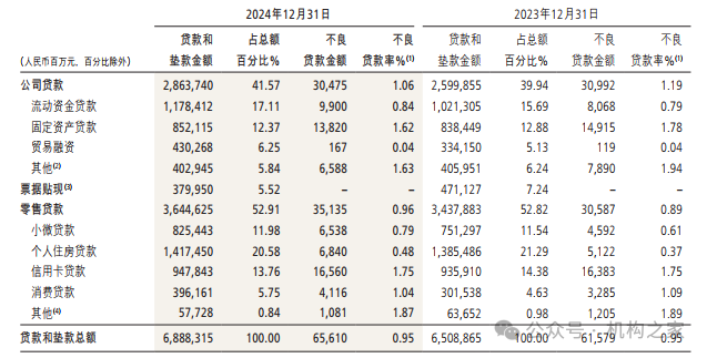 与此同时,对公和零售贷款资产质量也呈现分化趋势:目前来看,招商银行对公贷款资产质量有所改善,2024年不良率同比下降13BP至1.06%,公司贷款不良生成额同比减少19.0亿元;但零售贷款不良率反而上升7BP至0.96%,对应不良生成额同比大幅增加76.1亿元。这其中,小微贷款和个人住房贷款则为重灾区,不良额率攀升幅度均较大。