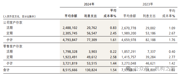 细项数据更是验证了零售业务目前的颓势:从资产端来看,零售贷款平均收益率高位回落44BP至4.58%,而同期对公贷款仅回落35BP;与此同时,在降息背景下招行对公存款平均成本率则下降15BP至1.61%,而零售客户存款反而上升2BP,体现出极大的刚性,这主要还是受存款结构中定期化影响,高成本的零售定期存款同比猛增36%。