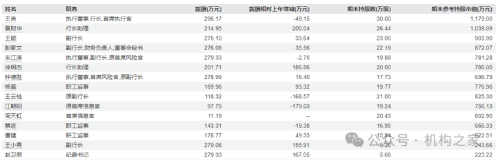 图片系招商银行部分董监高持股薪酬与持股情况